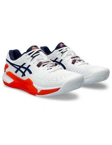 The Asics Gel-Resolution 9 Clay white/orange Tennis shoes are designed specifically for tennis and padel enthusiasts, who seek to push their limits on the courts. These shoes incorporate Asics' GEL cushioning technology, offering unparalleled response and shock absorption.