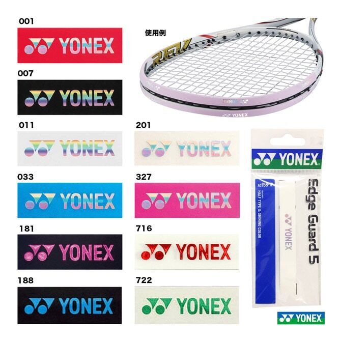 Yonex AC158-1P Edge Guard 5 Racquet - Personalize your Yonex racquet with 9 color options. Made with lightweight, durable polyurethane from Japan, weighing only 8 grams. Available in 9 different colors. Dimensions: W14 x L430 mm.
