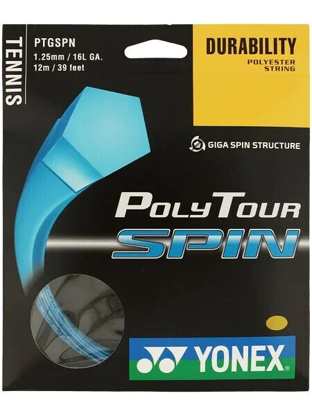 Yonex Poly Tour Spin is a five sided co-poly with sharp edges for gripping the ball. It also features a low-friction surface, which not only prevents frictional notching but also enables the strings to snap pack powerfully through impact. The result is massive spin-potential. Big hitters will love the controlled and predictable response, which comes in handy when maximizing stroke speed in the service of pace and spin.