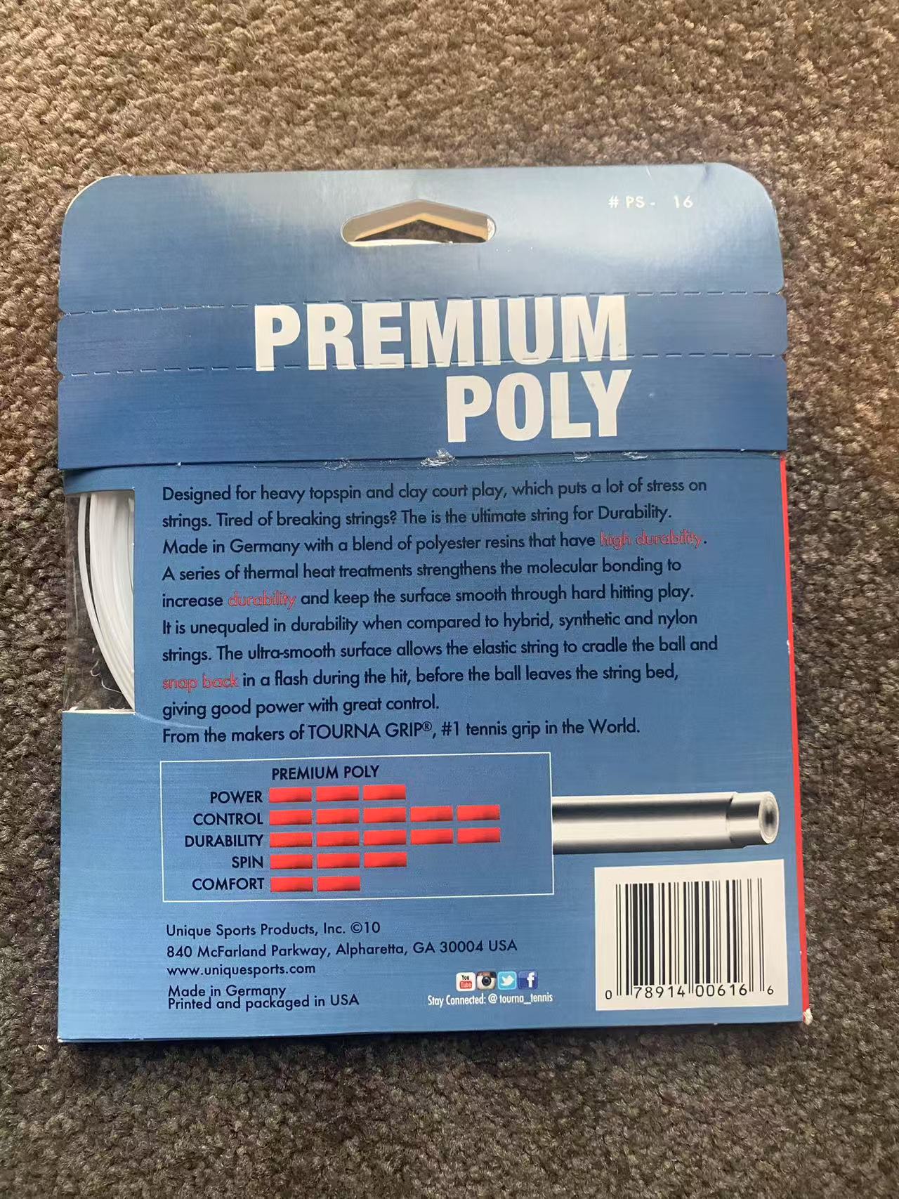 This durable polyester monofilament is ideal for budget minded players who crave control, spin and durability. The low power level will enable you to execute your most powerful strokes without fear of overhitting.