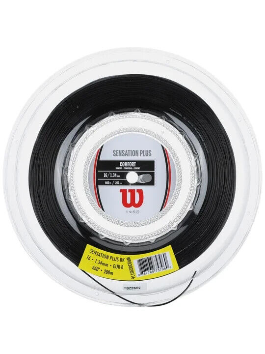 Sensation Plus, Wilson adds some control and durability to one of the game's most popular multifilaments. Like the standard version of Sensation, this string deploys an army of very flexible filaments to give you impressive comfort at impact. You'll also find a decent level of power, making this a good option for players looking for easier depth. For this version of Sensation Wilson reinforces the outer section with metallic ribbons, making this a great option for comfort seekers who want a little extra control and precision. The extra durability is also a nice bonus!